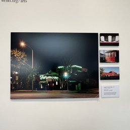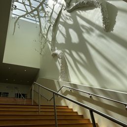 One of the great architectures in the city. Pleasant huge windows that look out on the colorful pacific design buildings across the street. Parking easy, airy, and pleasantly located just a brief walk away. Enjoy the changing art on the second floor walks as you ascend the mod stairway. When I attended there was a great exhibit of Don Bachardy paintings and sketches of his mate, Christopher Isherwood, along the main second floor hallway walls.